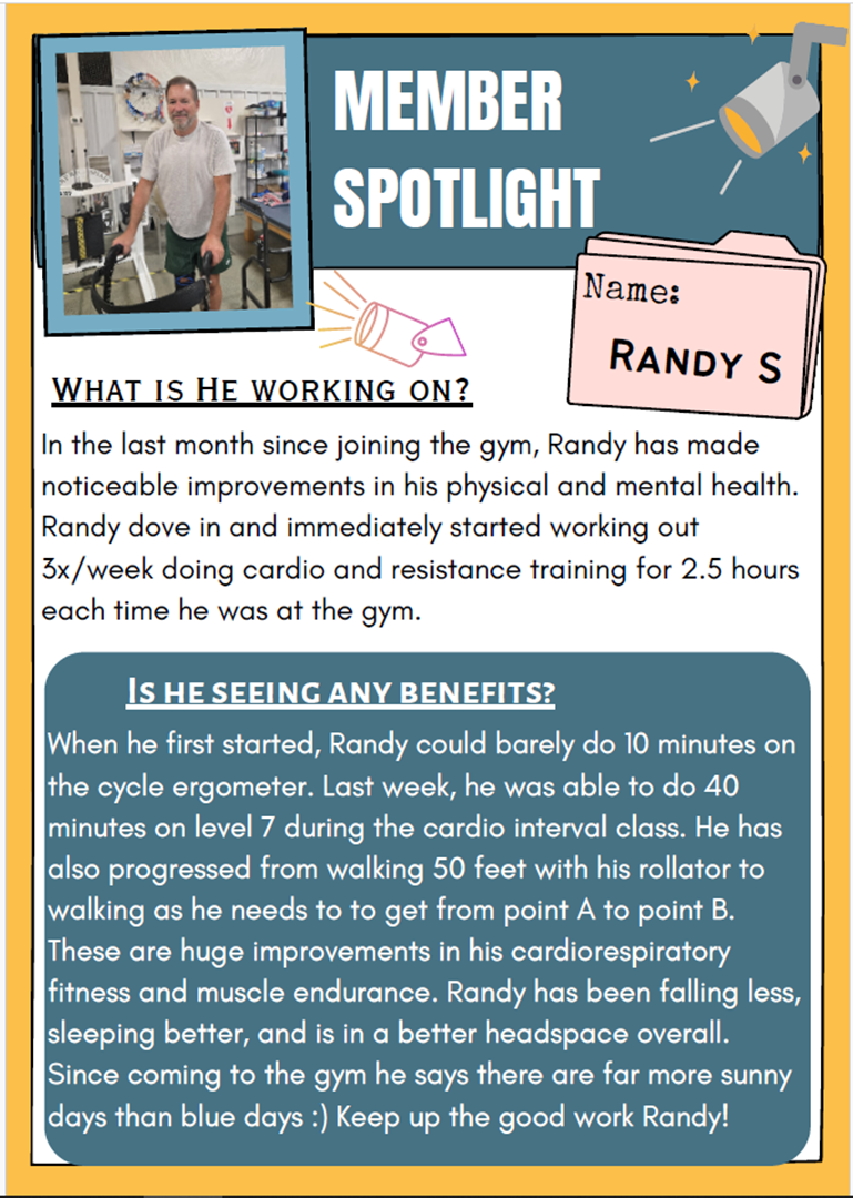When I was talking to Randy the other day, he said this place is exactly what he needed.  Randy has fully engaged in a very short period.  He’s doing the hard work and I’m thankful his body is responding in a positive way with all the effort he puts in.  MS is different for all of us and some get too fatigued too soon and it takes days to recover.  Randy is fortunate he’s able to handle all he is doing.  I’m thankful Randy is recognizing the mental and emotional health benefits as well the physical.  I hope you continue to make the progress you’re making Randy…well done!