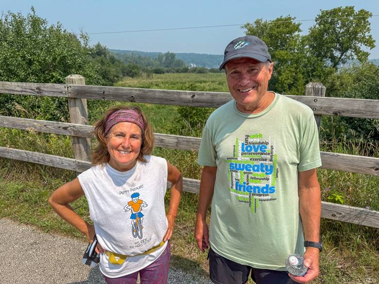 Last Thursday, Joan and I saw quite a few of you out there running, walking, biking, etc. as we walked 17.5 miles. It was great seeing so many of you out there doing your own thing. Our 17.5 mile walk went quite well. The temperature was quite a bit cooler which seemed to help. I’m not a stats guy, I go more by listening to my body. However, my watch kept track of some interesting stats. That walk took us 7 hours and 15 minutes. For me, it was 44,745 steps. That’s a long walk for a couple people with MS that had a hard time with seven miles just 10 weeks ago.
