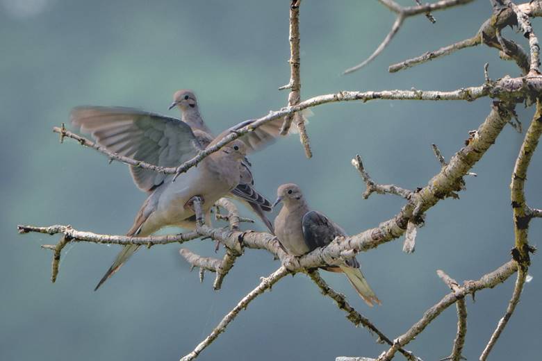 Monday morning, I was watching what looked like a mother dove with two young doves for a while. It looks like the mother dove still teaches the young ones even after they leave their nest.