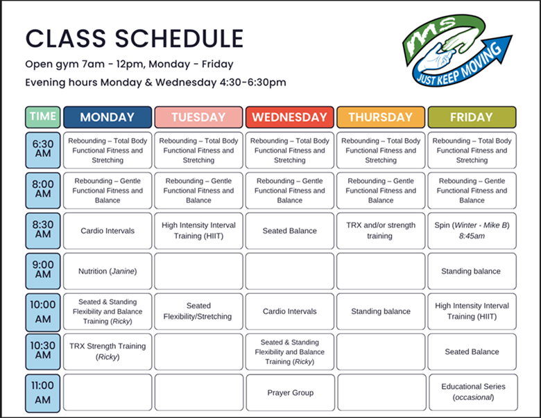 Exercise class schedule (to start 3/16/25). Feedback welcome to make this as best as it can be!