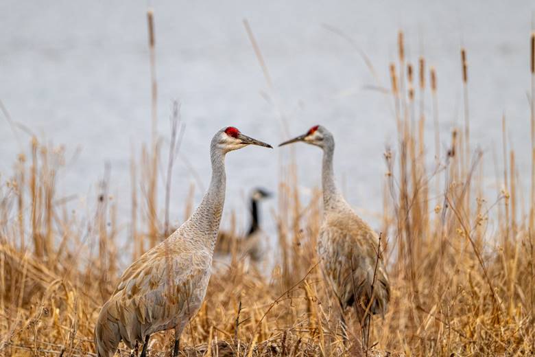 I went for a walk at Nashotah Park and saw another pair there.  Kind of a fun shot with the goose in the background.