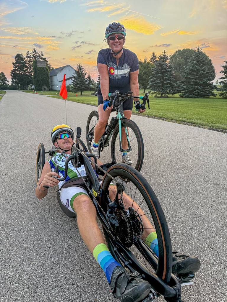 Todd has primary progressive MS at 60 years old. His left leg drags every step he takes. How is Todd going to be able to ride this ride? With the loving support of Diane. Todd will be riding a handcycle all the way across Iowa. Who would have thought this would even be considered when Todd started coming to the gym 12 or 13 years ago? Certainly not me. He’s doing his part to stay ahead of his MS with daily exercise despite his challenges with MS and his mobility.