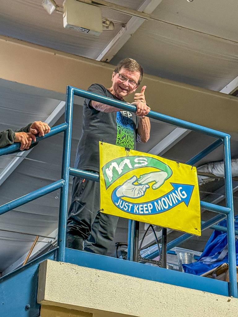 These classes are aimed to get everyone exercising together. I like that word “together” 😊. We’ll need help from volunteers before and after the cardio class on Wednesdays and Fridays to get members on and off equipment. All are welcome and encouraged to join…friends with MS, volunteers, and caregivers.