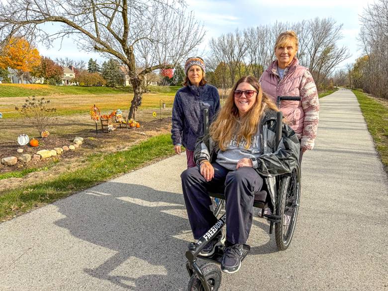 8:30am – 11:00am Outdoor walking – contact Joan, Pam or Dan to find out where we’re walking. You can meet up with us at any time within this time period. Last week Laura joined us on the Grit Chair. We had a nice walk.