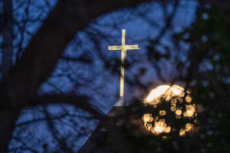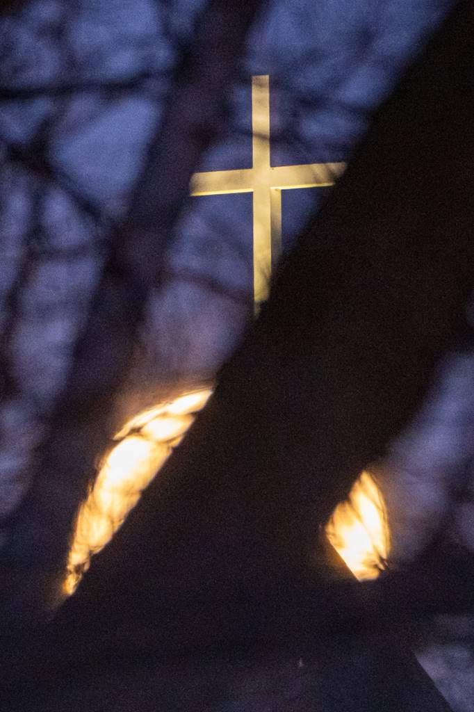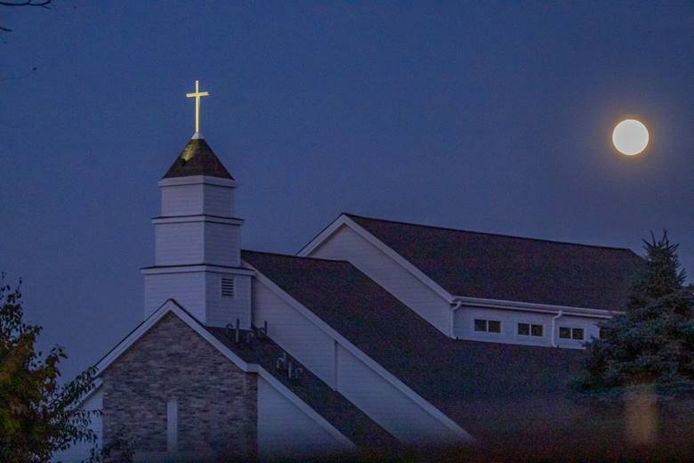 I could see the moon was going to rise through trees by this cross on the Baptist Church on Golf Rd by Pewaukee. I waited for about 20 minutes until it got in a nice spot.