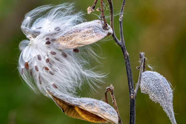 It’s been windy lately. The milkweed seeds were trying to hang in there.
