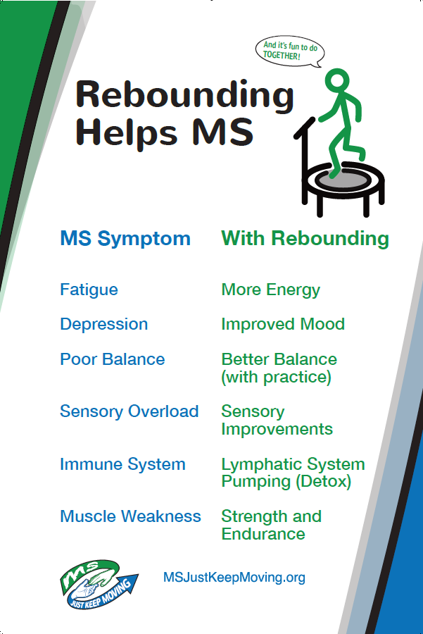 I hope you will join us Friday with Fayth and learn how you can personally benefit from rebounding as we live with MS. It’s beneficial, enjoyable and FUN especially when we do it “together” consistently.