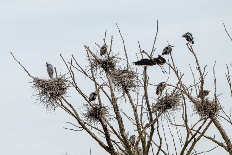 I went to Simmons Woods in Pewaukee to see if the Great Blue Herons migrated back yet. They did and they were busy rebuilding their nests.